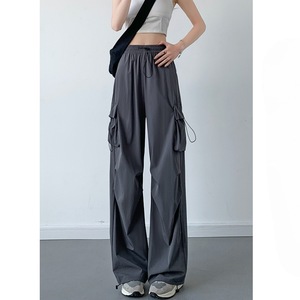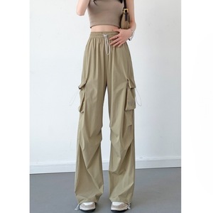 春秋宽松直筒阔腿裤小个子显瘦工装裤女运动休闲裤子美式街舞抽绳