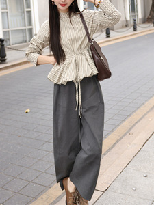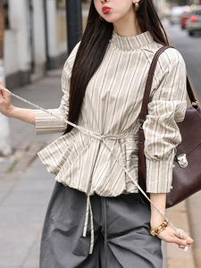 【花园宴会】条纹长袖衬衫春秋女款2025年新款气质收腰上衣