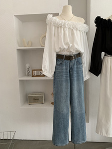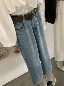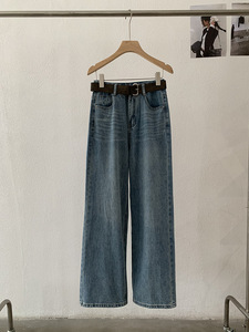 欧玛莱 早秋新品韩系高腰显瘦百搭洗水垂感腰带牛仔裤长裤女 4888