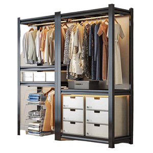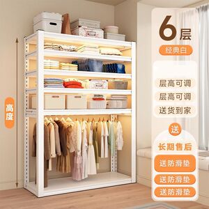 衣柜衣架货架防尘帘开放式衣帽间卧室简易角钢家用落地多层置物架