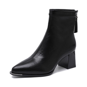 法式高跟小短靴女2025新款尖头粗跟高级感短靴优雅气质百搭裸靴