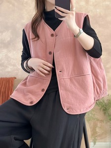 2025秋冬新款圆领单排扣马夹宽松大码显瘦复古工装口袋休闲款背心