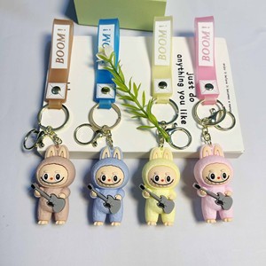 跨境创意卡通吉他拉布布钥匙扣小绵羊挂件学生书包挂饰小礼物批发