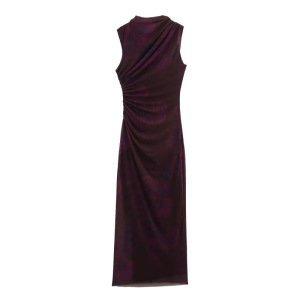 跨境外贸批发秋季新款ZA女装欧美风时尚印花褶皱连衣裙 9601541