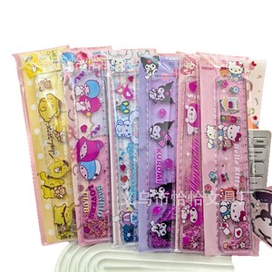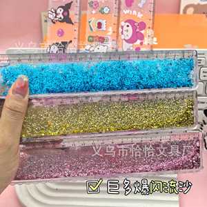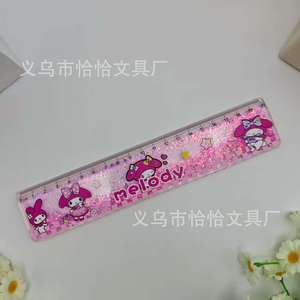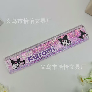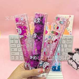跨境三丽鸥流沙尺20CM闪粉入油刻度直尺卡通库洛米减压流沙波浪尺