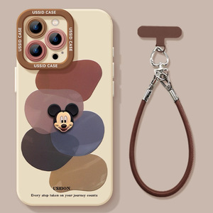 棕色米奇苹果17手机壳新款17Promax硅胶简约带挂绳17air保护套16