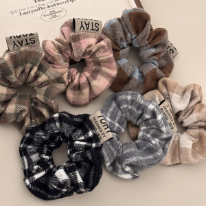 丸子复古大肠发圈格子少女心头饰发绳头发饰韩版学院风圈秋冬发饰