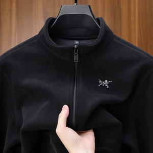 鸟家男士新款立领加绒外套春秋加厚拉链开衫夹克保暖摇粒绒休闲