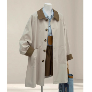 高级感撞色风衣外套女2025秋季新款韩系超好看简约中长款气质大衣