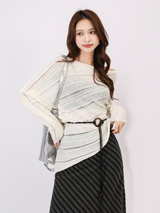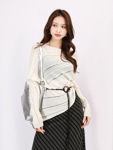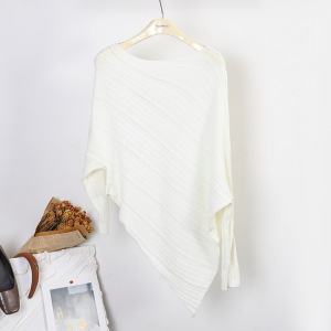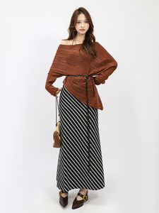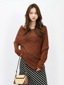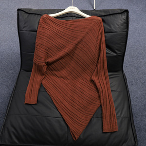 菲媛纯欲风一字斜肩针织衫女秋冬新款时尚百搭纯色不规则长袖上衣