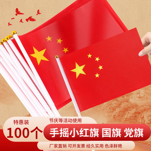 小国旗手摇旗小红旗小号8号7号手持中国小国旗五星红旗国旗带杆手
