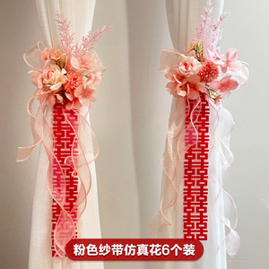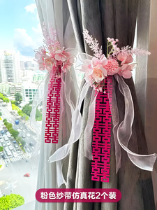 婚房氛围感布置窗帘绑带结婚拉花装饰花喜字挂件女方客厅卧室生日