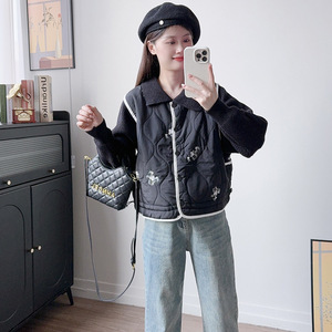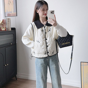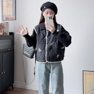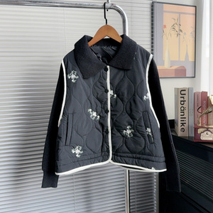 2025秋冬季新款高级感重工绣花拼接棉服毛衣外套女设计感针织开衫