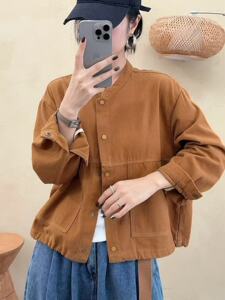 2025年秋款外套长袖立领宽松休闲韩版学院风明线外套新款时尚夹克