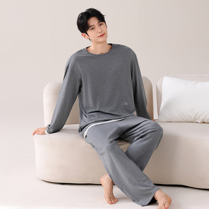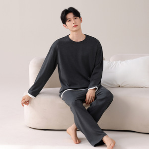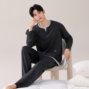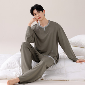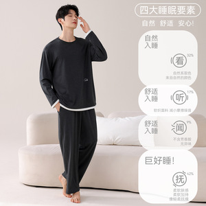 莫代尔男士高级感长袖睡衣春秋季2025新款宽松大码男款家居服套装