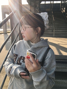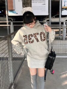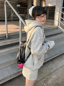 灰色连帽印花卫衣女2025新款美式高街oversize宽松休闲气质上衣服