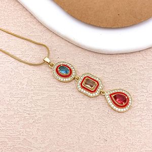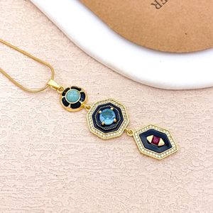 项链跨境波西米亚几何配饰高级感小香风彩色宝石时尚不掉色配饰女