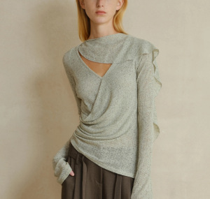 someoe sometme原创镂空麻交叉垂荡V领连身围巾领喇叭长袖上衣