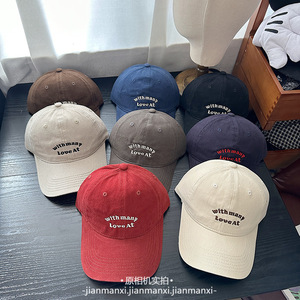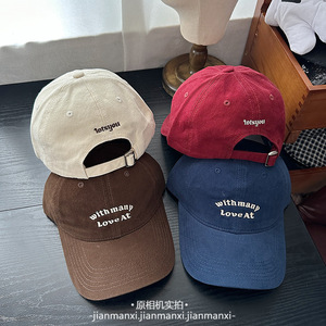 韩版百搭小字母刺绣棒球帽男早秋季简约软顶宽檐显脸小鸭舌帽子女