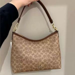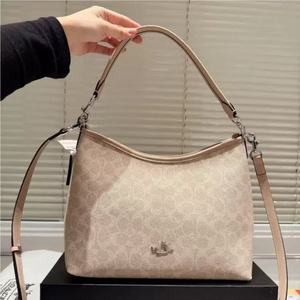 寇家Laurela单肩奶茶色老花纯色斜跨托特腋下包大容量流浪包百搭