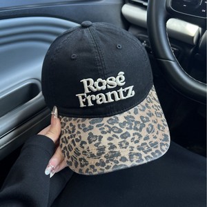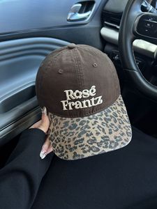 字母刺绣豹纹棒球帽女美式复古显脸小鸭舌帽宽帽檐大头围软顶帽子