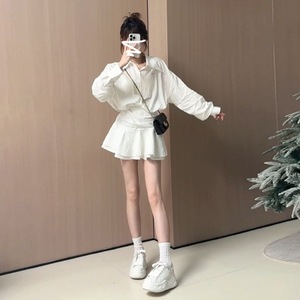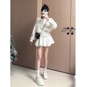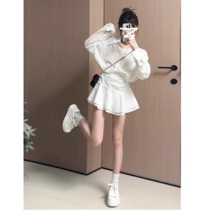 长袖白色衬衫连衣裙子女秋季2025年新款早秋流行韩系绝美穿搭短裙