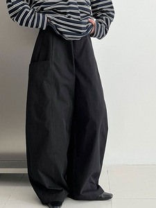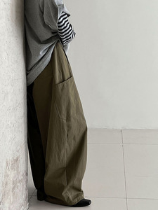 鹿西 韩系复古纯色宽松大口袋工装裤女秋季新款拼接百搭长裤1715