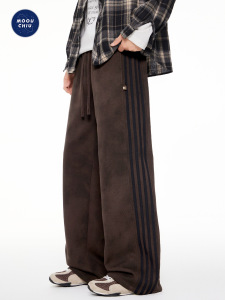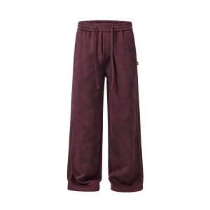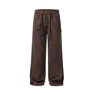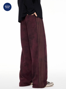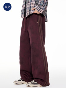 沐丘男装∣美式做旧复古扎染脏脏休闲裤男宽松直筒三条杆运动卫裤