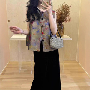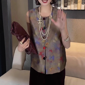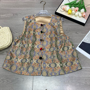 2025早秋款新中式人丝织锦缎提花纯手工花朵百搭时尚叠穿五色马甲