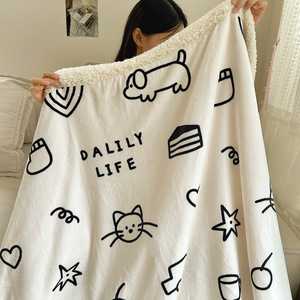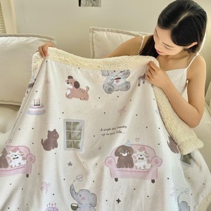 INS博主可爱风卡通A类牛奶绒毛毯毯子加厚羊羔绒儿童毯午睡盖毯