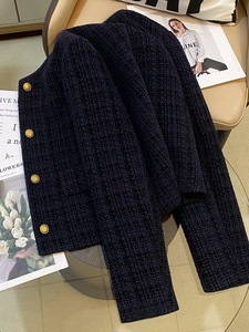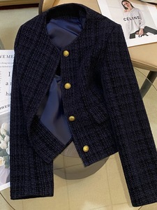 今年流行藏青色小香风西装外套女2025秋新款气质名媛休闲上衣