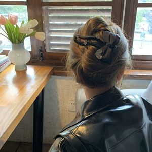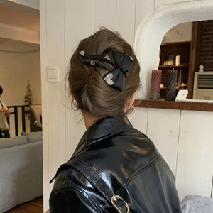 韩系2025新款法式缎面蝴蝶结爱心水钻发夹女高级感半扎发头饰发饰