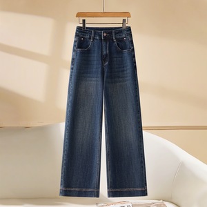 郑州女裤2025新款高腰宽松深色垂感版超好看微弹阔腿牛仔裤批发