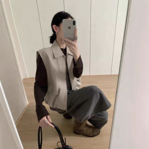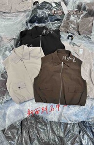 2025品质秋款女装韩系简约拉链口袋Polo领休闲磨砂皮马甲25619