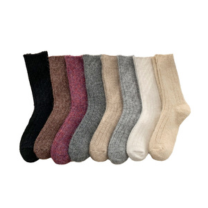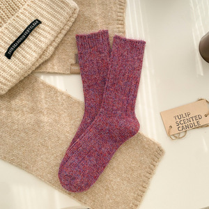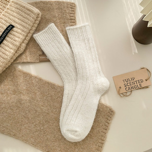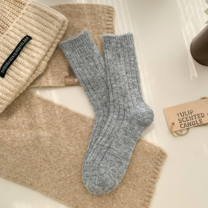 靴尚棉羊毛袜子女秋冬加厚中筒袜纯色百搭粗针保暖居家松口堆堆袜