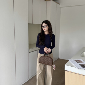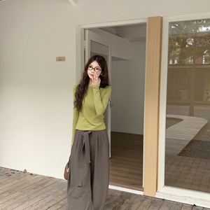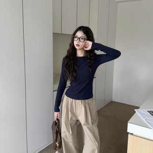 实拍#打底衫女内搭2025新款高级感chic别致上衣修身灰色长袖