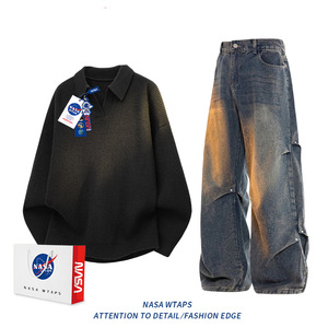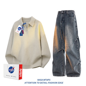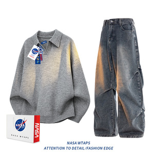 NASA ABOUT美式潮牌休闲运动套装男秋季新款宽松针织衫复古潮毛衣