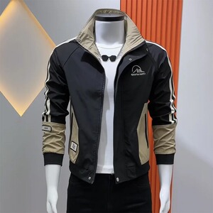 新款男士夹克春秋季韩版时尚修身拼接高级感立领百搭痞帅潮流外套