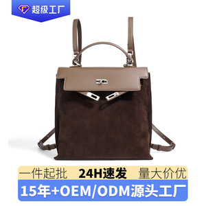 2025新款时尚磨砂牛皮双肩包小众真皮单肩包大容量简约多功能女包