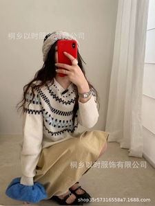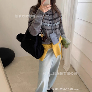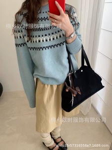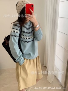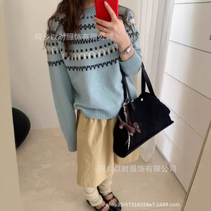 以时 韩系简约羊毛针织衫 2025年秋冬季新款韩系简约费尔岛毛衣女