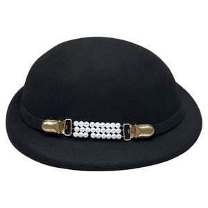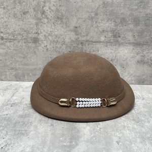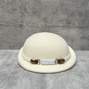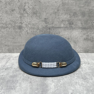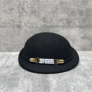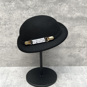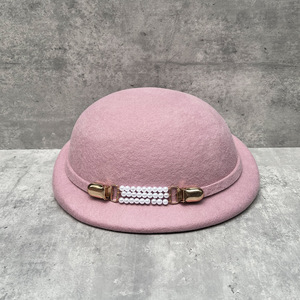 秋冬新款羊毛呢珍珠小盆帽女优雅气质时尚礼帽法式复古保暖贝雷帽