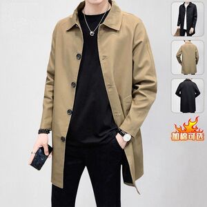 春秋季风衣男中长款外套男休闲宽松大衣高级轻熟潮牌帅气翻领大码