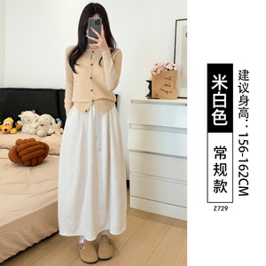 白色半身裙女秋季2025新款高腰垂感a字针织半裙小个子南瓜糯米裙