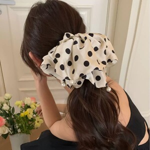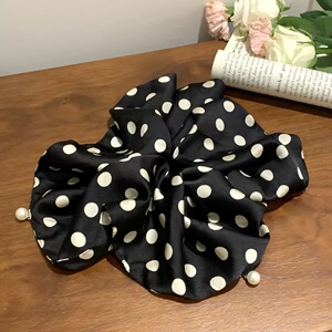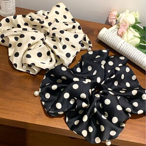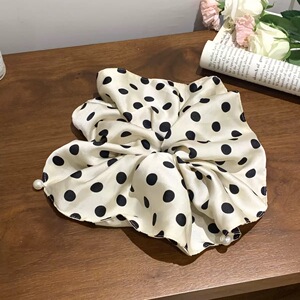 高级感超大波点缎面大肠发圈珍珠高弹扎头发双层发饰头绳韩国头花