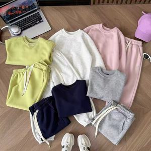 090811 不退换 儿童韩版刺绣学院圆领卫衣套装 一件代发