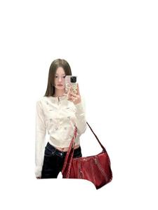 刺绣小狗短款白色毛衣针织开衫女早秋季新款修身内搭小上衣打底衫