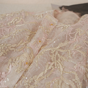 安斐欧娜2025新款亮片蕾丝花纹欧根纱柔美刺绣珍珠纽扣女短袖衬衫