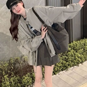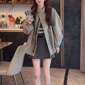 英伦风衣外套女2025秋季高级感宽松休闲廓形收腰抽绳工装夹克上衣