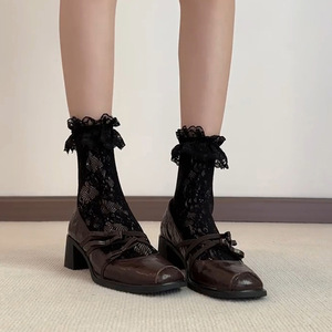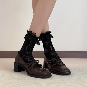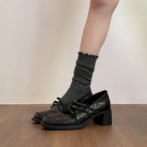 羊皮版~法式复古风方头百搭玛丽珍鞋女交叉带蝴蝶结温柔粗跟单鞋