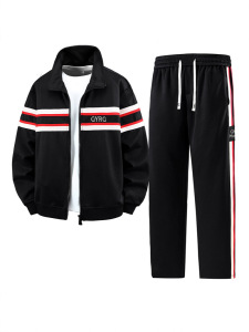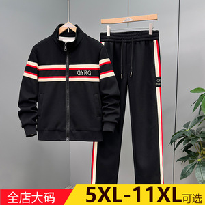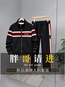 2025秋季加肥加大套装拼接织带300斤大码上衣裤子休闲运动